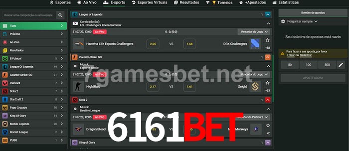O 6161Bet oferece uma grande seleção de opções de apostas em e-sports com probabilidades competitivas